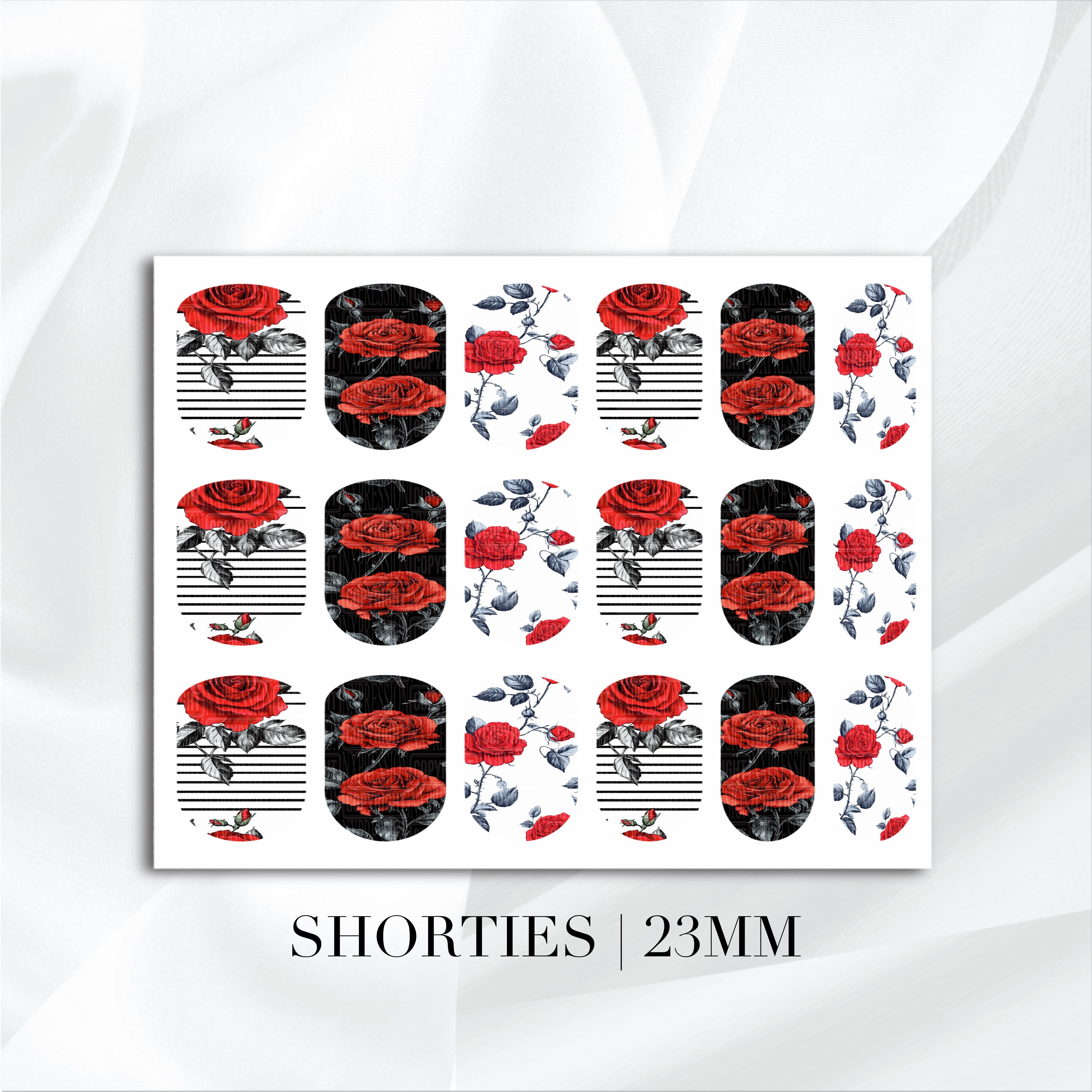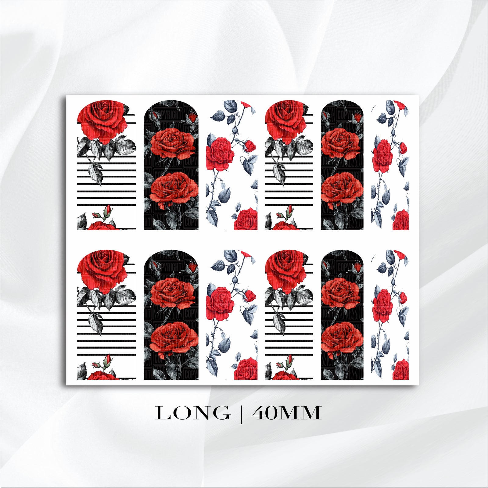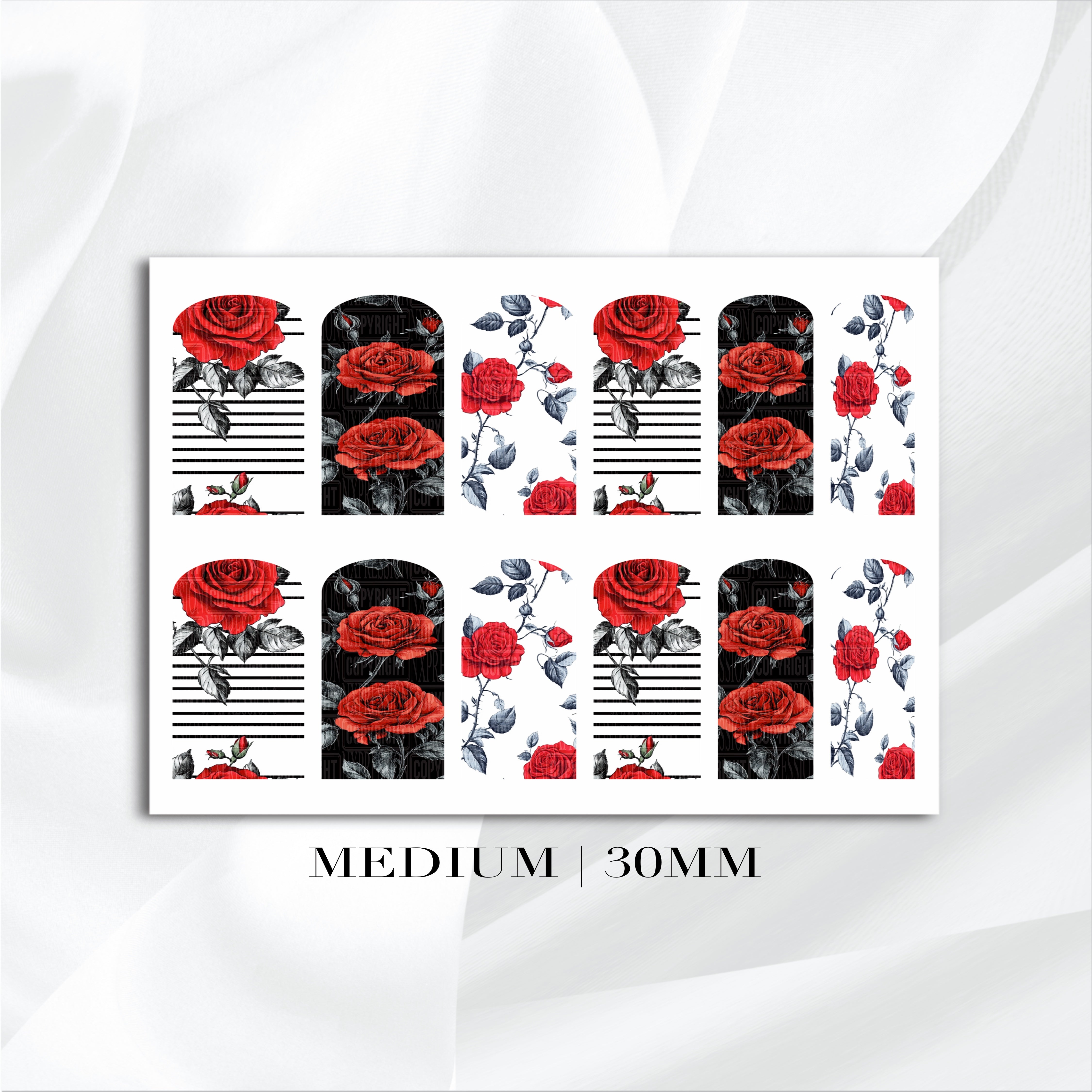 All decals are customizable to fit and can be used with all nail systems ( Natural Nails - Acrylic Nails - Hard Gel Nails - Press On Nails )